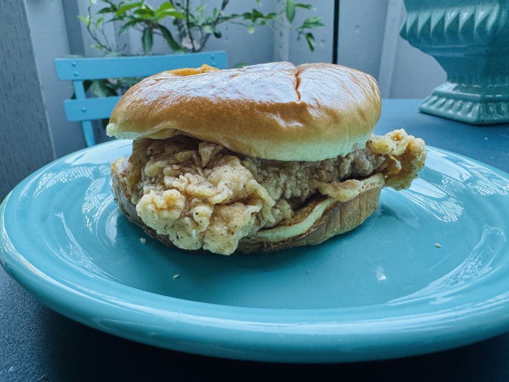 An extra crispy filet with premium pickles, spicy mayo, on a brioche-style bun.